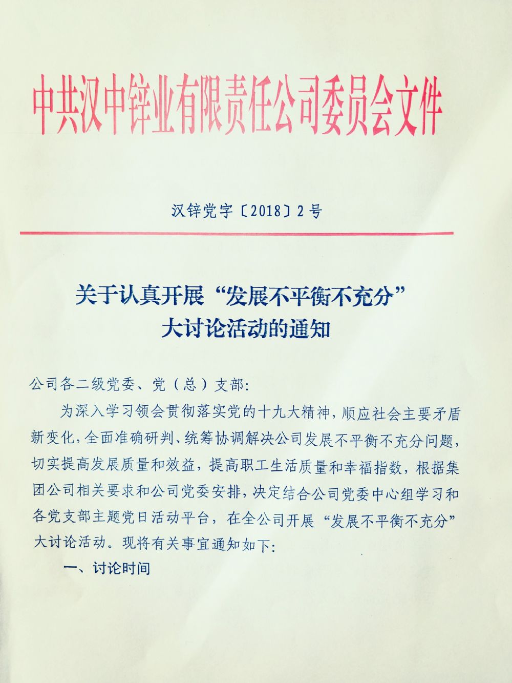 關于認真開展“發展不平衡不充分”大討論活動的通知