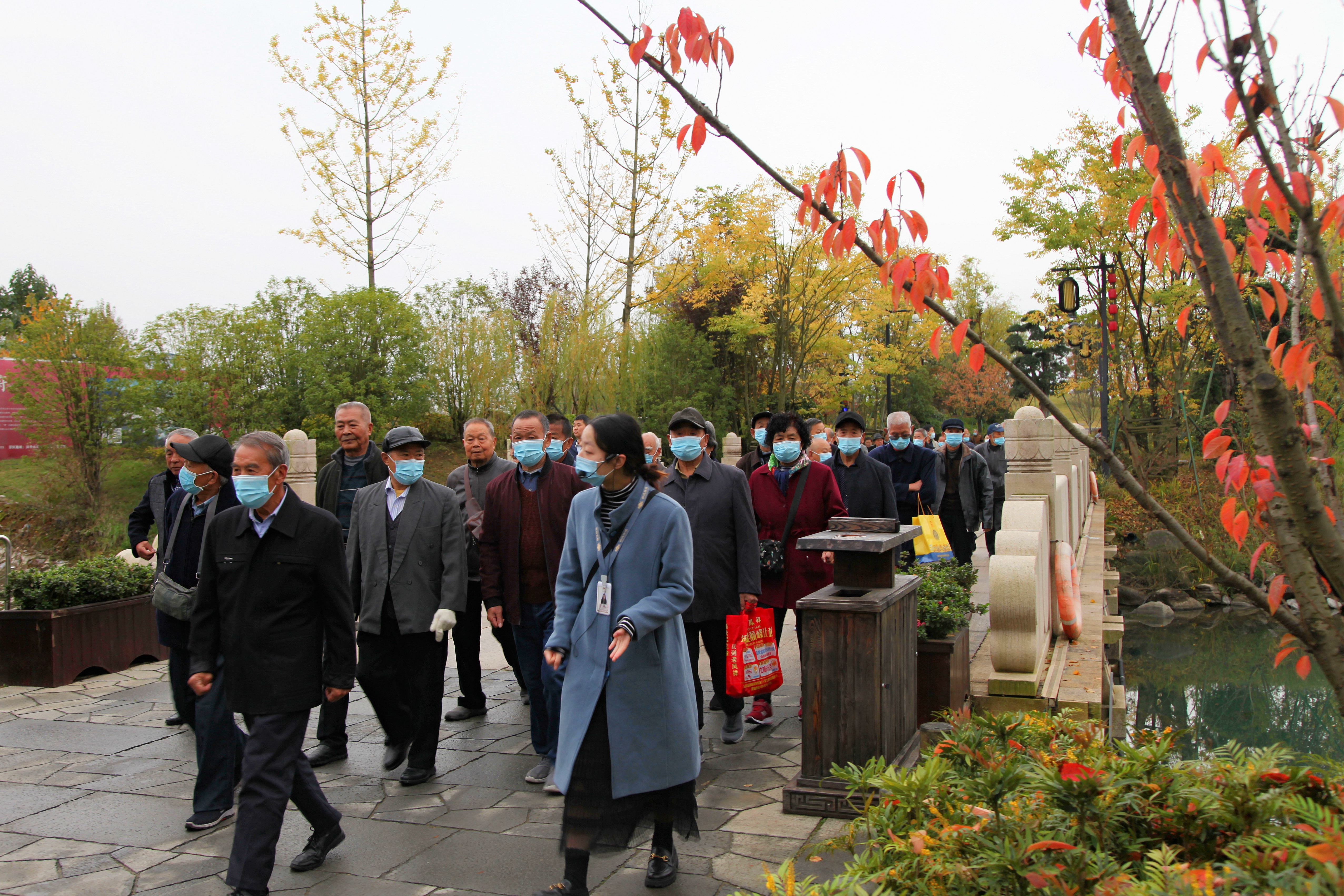 在滿眼秋色之中,老同志們緩步穿行過蒼松挺拔、楓葉流丹、銀杏葉飛舞的湖畔路上,綠地、翠湖、花海、樓宇、雨后清香的空氣……使人遠離城市喧囂,盡賞秋日漢中特色風光。老同志們一路歡聲笑語,時而步履不停,時而駐足欣賞,倍感身心愉悅。