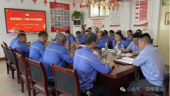 8月30日,公司黨委委員、副總經(jīng)理趙律到渣處理車間黨員活動(dòng)室宣講黨的二十屆三中全會(huì)精神,銅礦公司黨支部以騰訊視頻會(huì)議形式參加。渣處理車間、銅礦公司全體黨員、入黨積極分子、職工代表共計(jì)39人參加。宣講會(huì)上,趙律從黨的二十屆三中全會(huì)的重要意義、...
